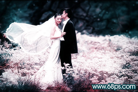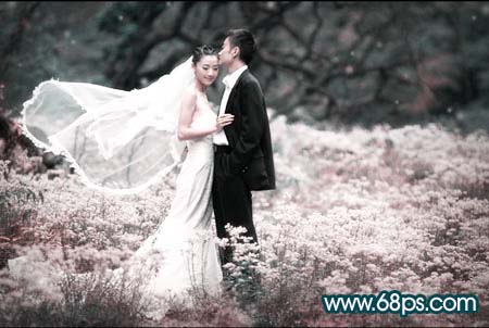 本教程介绍婚纱照片的简单调色。调色最快捷的方法就是使用通道,可以用Lab或者RGB通道等,把其中的一个通道覆盖另一个通道,图片就有意想不到的效果,然后再进行局部润色。