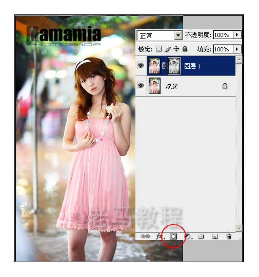 3.点击LAB通道,回去图层面板,点击这个红圈处,为了给图片添加蒙版就是说我们用明度通道做这个层的蒙版
