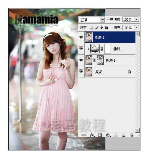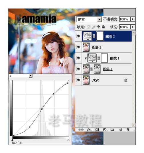 5.按着ALT键,同时点击图层调整,选择,曲线,使用前一图层创建剪贴蒙版,这个打勾曲线设置如图