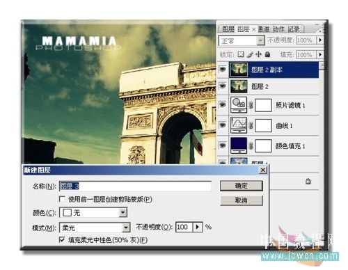 10、按着键盘的ALT,同时点击新建图层,如图,按确定
