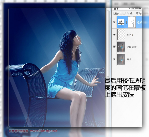 6.最后用较低透明度的画笔在蒙版上擦出皮肤,完成最终效果。