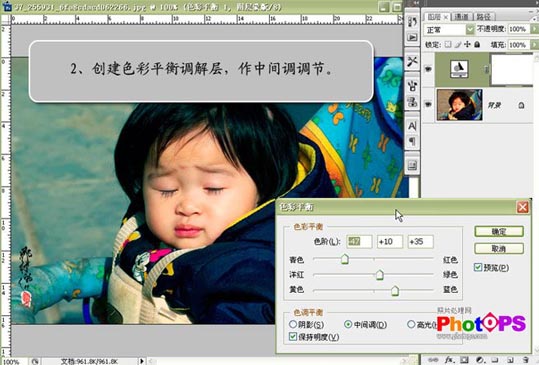 2.新建调整图层,选择色彩平衡参数设置如下图