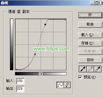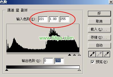 四、按Ctrl + J 复制一层,然后按Ctrl + Shift + U 去色,按Ctrl + I 反选,然后进去通道控制面板,复制蓝色通道,按Ctrl+ L 调色阶参数如图