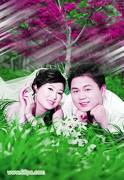 六、按Ctrl + J 两次复制两层,再把这三个图层合并(即动感模糊的图层跟复制的两个图层合并),然后按 Ctrl + T 变形如图