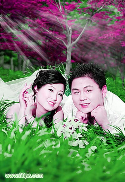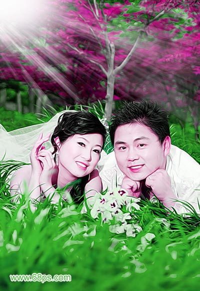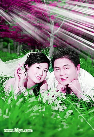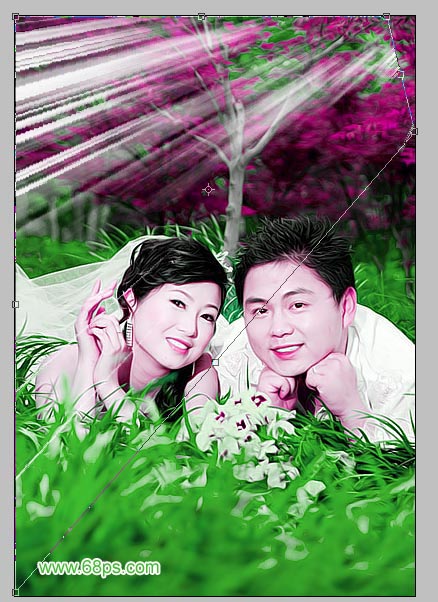 用橡皮工具选择适当的大小把光线稍微擦除如图