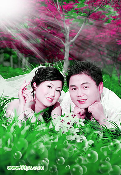 选择画笔工具选择泡泡笔刷,适当的在图层下面刷一些笔刷注意泡泡的透明度和大小效果如图