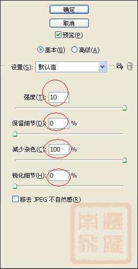 12、对高光层进行滤镜-杂色-减少杂色,参数如下图设置,再按Ctrl+F重复一次增加效果。