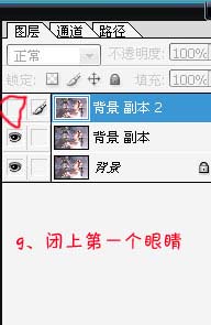 9、关闭背景副本2的第一个眼睛。