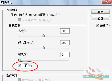 1、复制背景得到图层1,执行图像—调整—匹配颜色,勾选中和。