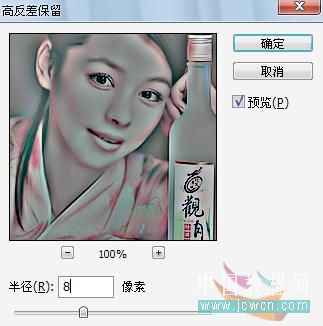 17、新建一个图层,盖印可见图层,执行滤镜—其它—高反差保留,半径为8,点击确定;将混合模式改为柔光,调整图层不透明度为80%。