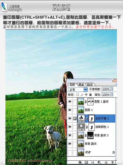 5、在最上新建一层,盖印图层(ctrl+shift+alt+E),复制此图层,执行滤镜-模糊-高斯模糊,数值自定,刚才盖印图层,给复制的图层添加蒙版,适当涂抹一下,盖印图层是将下面的所有层复制在一个层上。