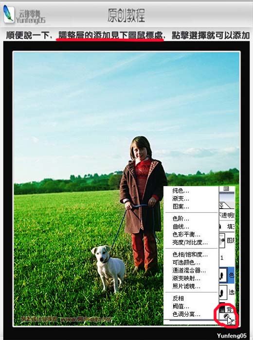 6、顺便说一下,调整层的添加风下面鼠标处,点击选择就可以添加。