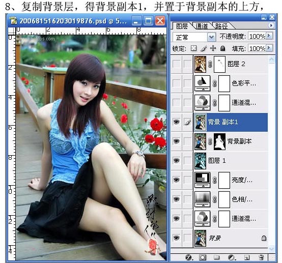 8、复制背景层,得到背景副本上,并置二背景副本的上方。