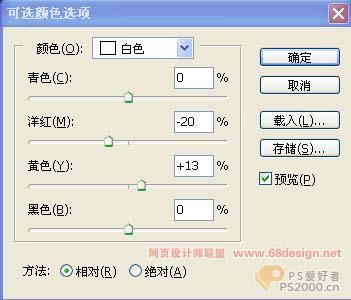 9、点击图层-新调整图层-可选颜色,参数如下图设置: