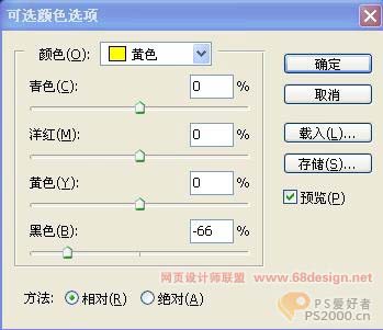 10、点击图层-新调整图层-可选颜色,我觉得黄色有点过重了,所以我调了一下选取黄色,参数如下图设置,