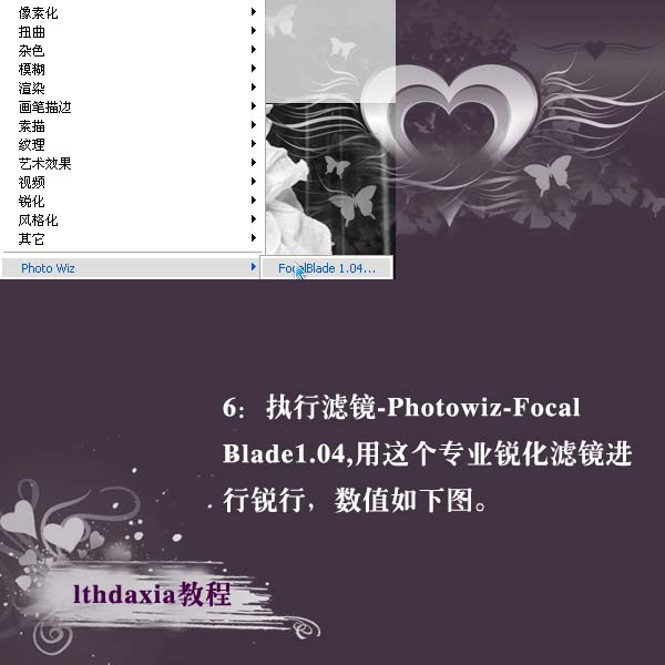 6、执行滤镜-photowiz-FocalBlade1.04,用这个专业锐化滤镜进行锐化。