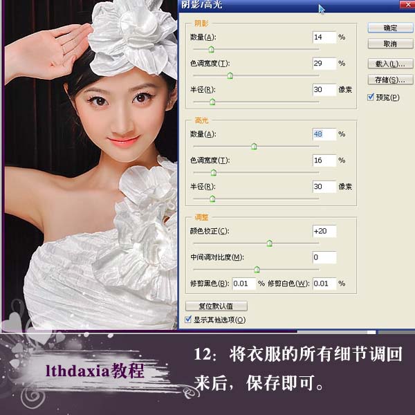 11、最后再观察一下,发现衣服太亮了,执行-图像-调整阴影/高光。