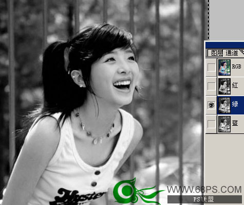 第1步:打开原图,调出通道控制面板如图,然后点绿色通道,按 Ctrl + A 全选,按 Ctrl + C 复制,再点蓝色通道,按 Ctrl + V 粘贴