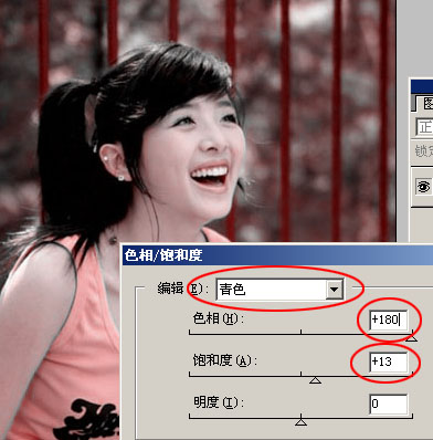 第2步:选择菜单: 图像 > 调整 > 色相/饱和度,参数设置如图