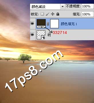10、添加纯色调整层,颜色#332714,图层模式颜色减淡。