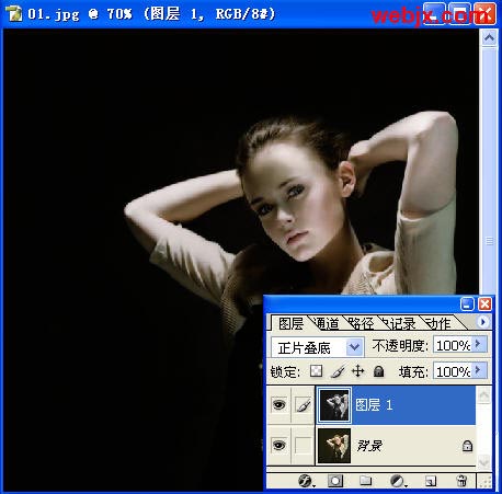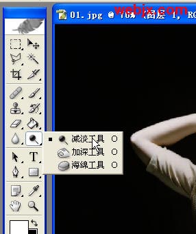 4、拼合图层,然后使用减淡工具把人物涂抹出来。