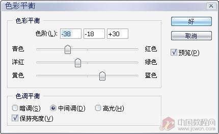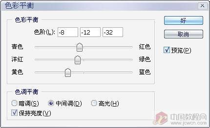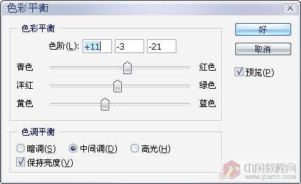 第7步:添加"色彩平衡"调整层,再对其整体色调进行适当调整,这里有连用了两次,直到满意