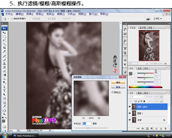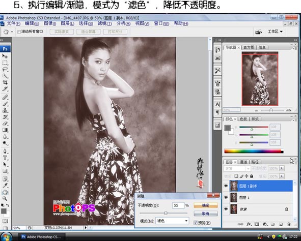 6、执行滤镜/编辑/渐隐,模式为“滤色”,降低不透明度。