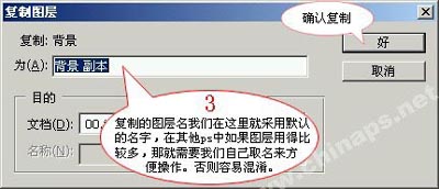 第3步:复制的图层名我们在这里就采用默认的名字,在其他ps中如果图层用得比较多,那就需要我们自己取名来方便操作。否则容易混淆。