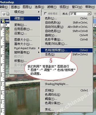 第5步:我们利用“背景副本”图层进行“图像”-“调整”-“色相/饱和度”的调整。