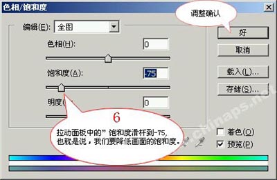第6步:拉动面板中的饱和度滑杆到-75,也就是说,我们要降低画面的饱和度。