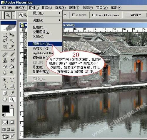第20步:为了方便在网上发布这张图,我们还得进行“图像”-“图像大小”的调整。如果你不准备发布,可以直接跳到后面的第27步。