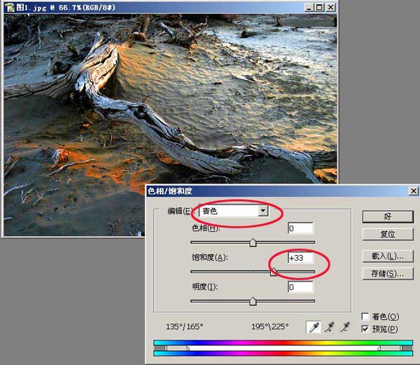 5、为了强调片子的冷暖对比,还需要加强冷颜色的饱和度,再次打开编辑下拉框,选择青色选项,看图