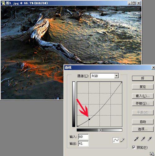6、选择图像——调整——曲线,适当调整片子影调,直到满意,看图