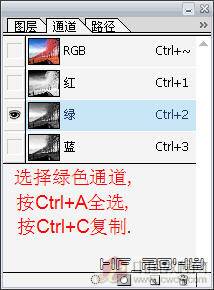 第1步:打开素材图片,进入通道面板,因为我们要还原绿色,所以选绿色通道来替换红色通道。