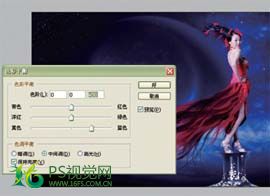 16、合并所有图层,执行色彩平衡:中间调加蓝,如图所示。
