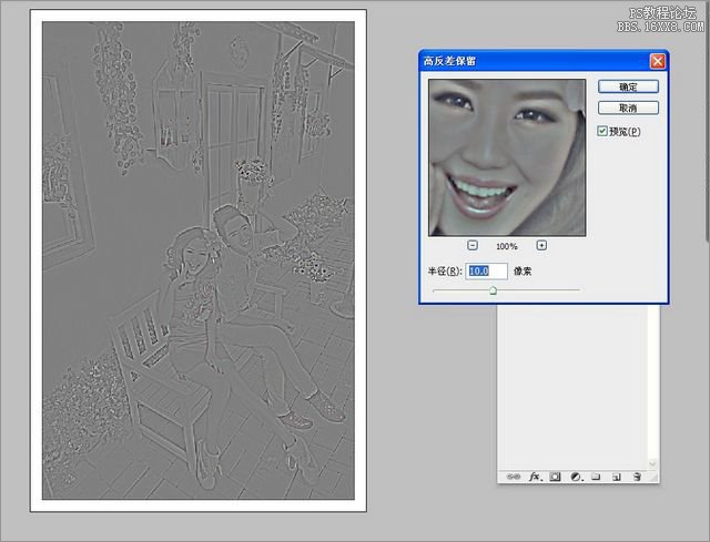 6、复制一个人物图层执行滤镜-其他-高反差保留半径10,只要是给照片添加层次质感,起到比锐化更好的作用,人物正常模式调整成柔光。