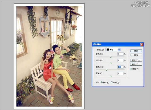 8. 执行可选颜色选择黑色通道 给照片添加少量蓝色