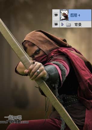 8、用模糊工具涂抹人物边缘,使之模糊。