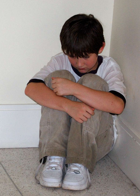 8、下面在Photoshop中打开一个忧郁小男孩的照片,把它粘贴到房间的床上,然后按下Ctrl+T重新调整大小,如图所示。