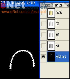 现在将提手部分作为选区,打开通道面板,新建通道Alpha 1,并且填充为白色。