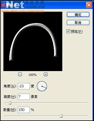 现在在菜单栏中执行“滤镜”→“风格化”→“浮雕效果”命令,设置角度为-22度,高度为7,数量为150%。
