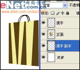 复制提手图层为提手图层副本,然后将其置于正面图层下方,接着在工具栏中选择移动工具,将图形向右移动少许,效果如图。