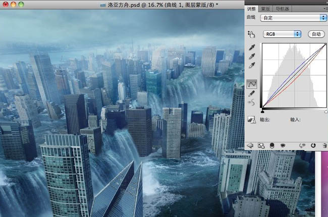 作者合成的非常细腻,很多细节的处理都值得借鉴,如水面倒影的处理部分,作者先制作好水波纹理,然后把倒影部分用置换和动感模糊滤镜特殊处理,