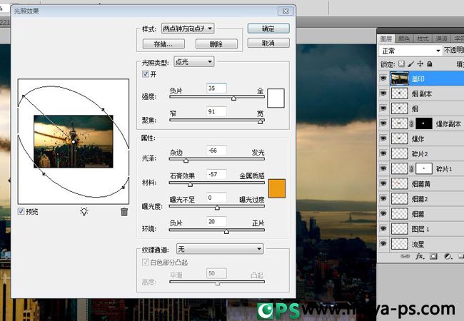 28、新建图层执行盖印命令(ctral+shift+alt+e)然后执行滤镜——渲染——光照效果。