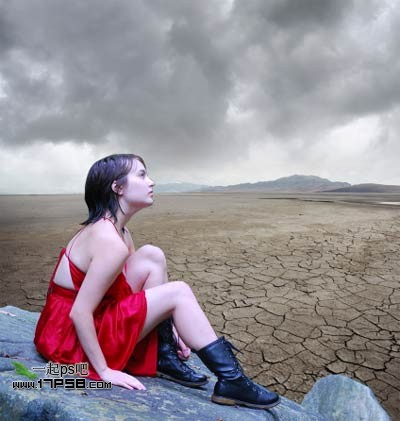 1、新建文档800x800像素,将干燥荒地图片拖入,适当缩放,然后打开美女图片,用钢笔去背,也拖入文档中。