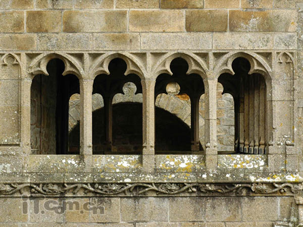 3、使用钢笔工具创建石柱间间隙的路径,然后单击右键选择“建立选区”,如图所示。把路径变为选区后,按下Delete键清空。