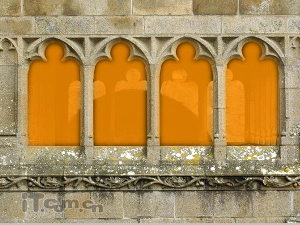 2、在photoshop中打开城堡素材,然后复制粘贴到我们的图片中,并重命名为“石柱”,如图所示。