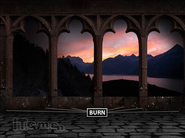 13、使用用加深工具,在石柱的底部涂抹,加强阴影效果。