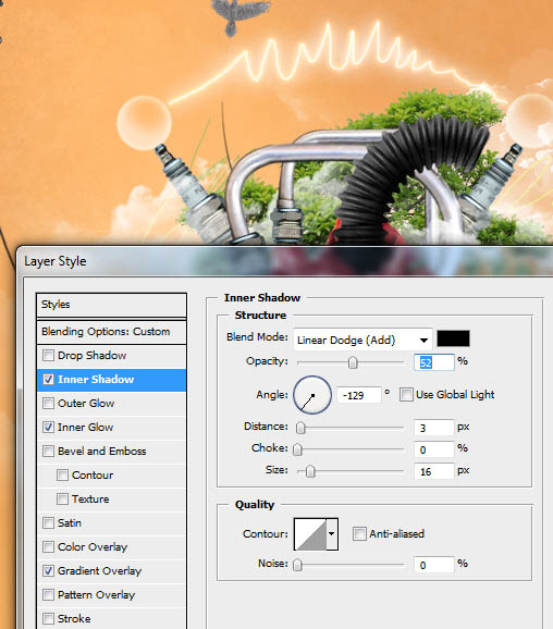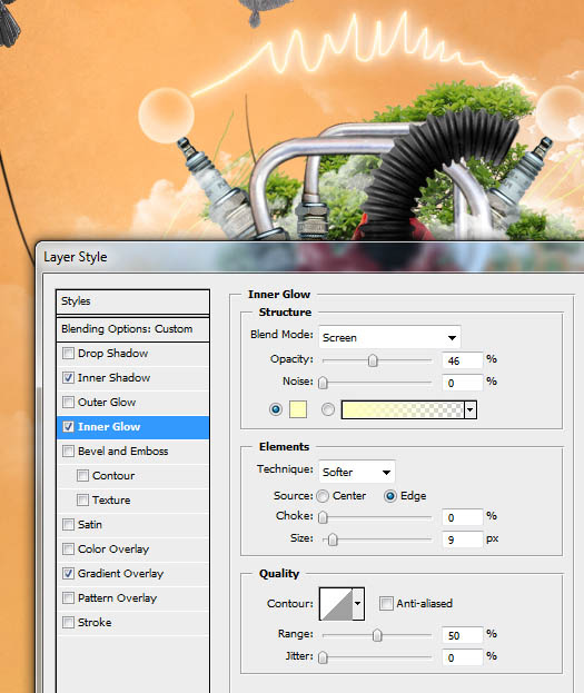 然后,在图层面板(F7)中设置填充为0%。在混合选项里使用下面的设置。