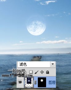 4、将地球素材拖入,图层模式滤色,添加蒙版,用黑色柔角笔刷涂抹删除多余部分。